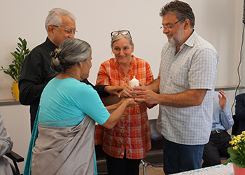 Miss.P.V. Marykutty, the founder of Christeen handed over the candle to the family of Mr. Gerhard and wife Renate Kornhuber, who have been taken the initiative to start Christeen Ministry in Austria as per God’s plan. It was a spirit filled, beautiful and unforgettable event.
